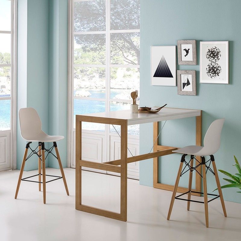 Hvis dit køkken ikke har en ø eller en halvø, hvor du kan spise din morgenmad komfortabelt og uden at skulle gå til spisestuen, vil dette være en hurtig mulighed, der tilføjer stil til rummet. Du kan sætte dig ned for kaffe hver morgen og slappe af i et par minutter, inden du forlader hjemmet. Du kan placere den på et lille rum, så det er ikke nødvendigt at have et stort køkken. Lim bordet på væggen eller lad det være som en ø, placer en skammel på hver side og få et hjælpeområde med den stil, du leder efter.