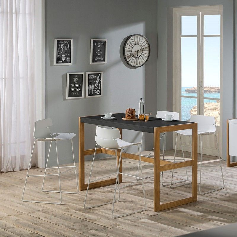 I dag finder vi en bred vifte i denne type løsning, næsten det samme som konventionelle spiseborde og stole. Taburetterne og de høje borde giver plads og komfort, der er nødvendig, så vi kan spise frokost, aftensmad eller få en vin i et mere intimt område i rummet. Hvis du har et stort køkken, vil denne mulighed være nyttig at have vores morgenmad eller holde værtselskabet inden du går til spisestuen.
