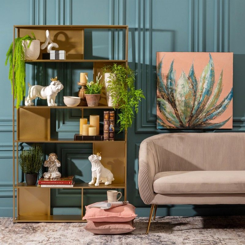 - Metalhylde i gammel guldfarve med 4 hylder.